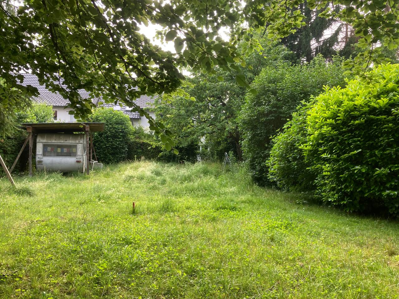 Bei dem Grundstück handelt es sich um die hintere Hälfte des ursprünglichen Grundstücks meiner Großeltern. Auf dem vorderen Teil (bleibt in Familienbesitz) steht ein kleiner Bungalow, in dem mittlerweile meine Eltern wohnen. Die Zufahrt zu Ihrem zukünftigen Grundstück würden wir uns teilen. Auf dem Grundstück steht sehr viel alter Baumbestand. Unter anderem ein Kirschbaum, ein Apfelbaum und 3 große Tannen.